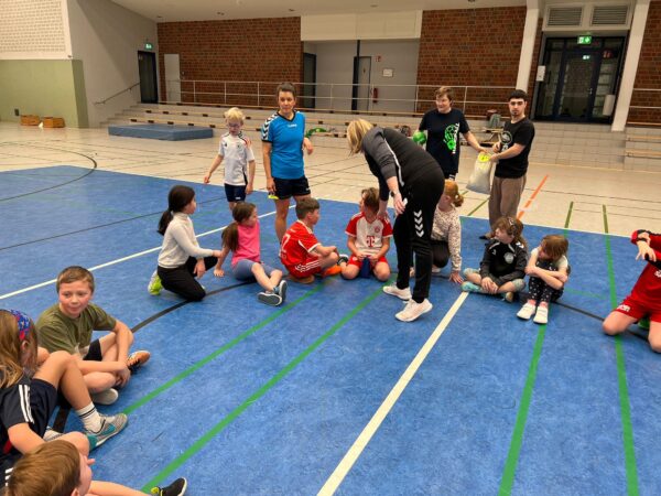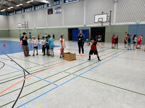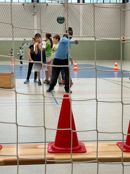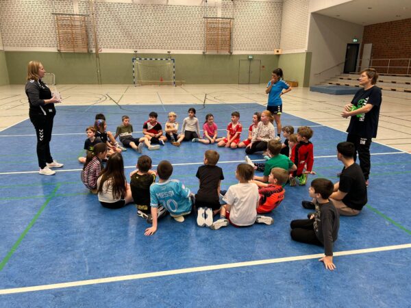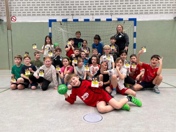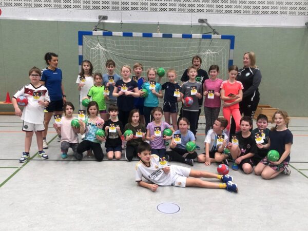 Auch in diesem Jahr fanden an unserer Schule erneut die bundesweiten Handball-Grundschulaktionstage statt. Besonders passend zum Beginn der Handball-EM der Männer konnten die Kinder der 3. und 4. Klassen diesen Sport auf sehr spielerische Art und Weise im Sportunterricht kennen lernen. In zwei Schulstunden konnten sie das offizielle Handball-Spielabzeichen des DHB – den Hanniball-Pass – absolvieren, ihre persönlichen Fähigkeiten austesten und in verschiedenen Spielformen ihren Teamgeist unter Beweis stellen. Und vor allem: Ganz viel Freude an Bewegung und für das Handballspielen entwickeln. Unterstützung erhalten die Grundschulen dabei von Übungsleiter*innen aus einem lokalen Handball-Verein. Unsere Schule kooperiert für diese Aktion mit der HSG Bever-Ems (Handballabteilung von BSV Ostbevern und SV Ems). Gemeinsam mit den Lehrkräften, den Trainerinnen Maike Höggemann und Dagmar Möllers von der HSG und der Mutter Dorotee Quest, die selber Handball spielt, haben die dritten und vierten Klassen ihre Handballeinheiten absolviert und den Hanniball Pass erhalten. Wer von den Kindern Interesse am Handball bekommen hat, kann sich auf der Internetseite der HSG (www.hsg-bever-ems.de) über Ansprechpartner*innen und Trainingszeiten informieren. Es ist toll, dass es immer wieder ehrenamtliche Trainer*innen gibt, die in die Grundschule kommen, um solche tollen Aktionen durchzuführen.
