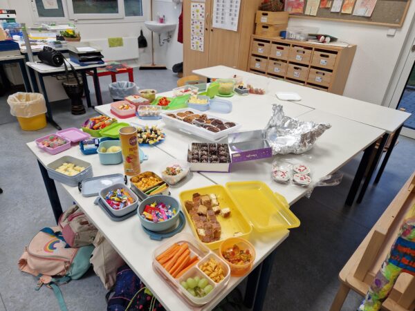 In Ostbevern gab es Anfang November gleich zwei Highlights an einem Wochenende: Die „Neue Mitte“ wurde feierlich eingeweiht und es fand der Kastaniensonntag statt. Bei beiden Veranstaltungen war unsere Schule vertreten. Am Samstag sangen die Kinder der Klasse 3a mit ihrer Musiklehrerin Frau Prinz auf der großen Bühne auf dem Kirchplatz das Herbstlied „Warum kleiden sich die Bäume aus?“ und sorgten so für eine musikalische Unterbrechung zwischen den Teilen des Quizzes „Schlag den Bürgermeister“. Und am Kastaniensonntag war der Förderverein unserer Schule mit sehr vielen helfenden Händen aus der Elternschaft im Großeinsatz für das Café, das traditionell im Edith-Stein-Haus mit leckeren Torten, Brezeln, Popcorn und Getränken ins Warme lockt. Es ist schön zu sehen, wie aktiv die Dorfgemeinschaft und die Elterngemeinschaft unserer Schule ist. Ein großes Dankeschön an alle, die an dem Wochenende für die Schule oder den Förderverein im Einsatz waren.